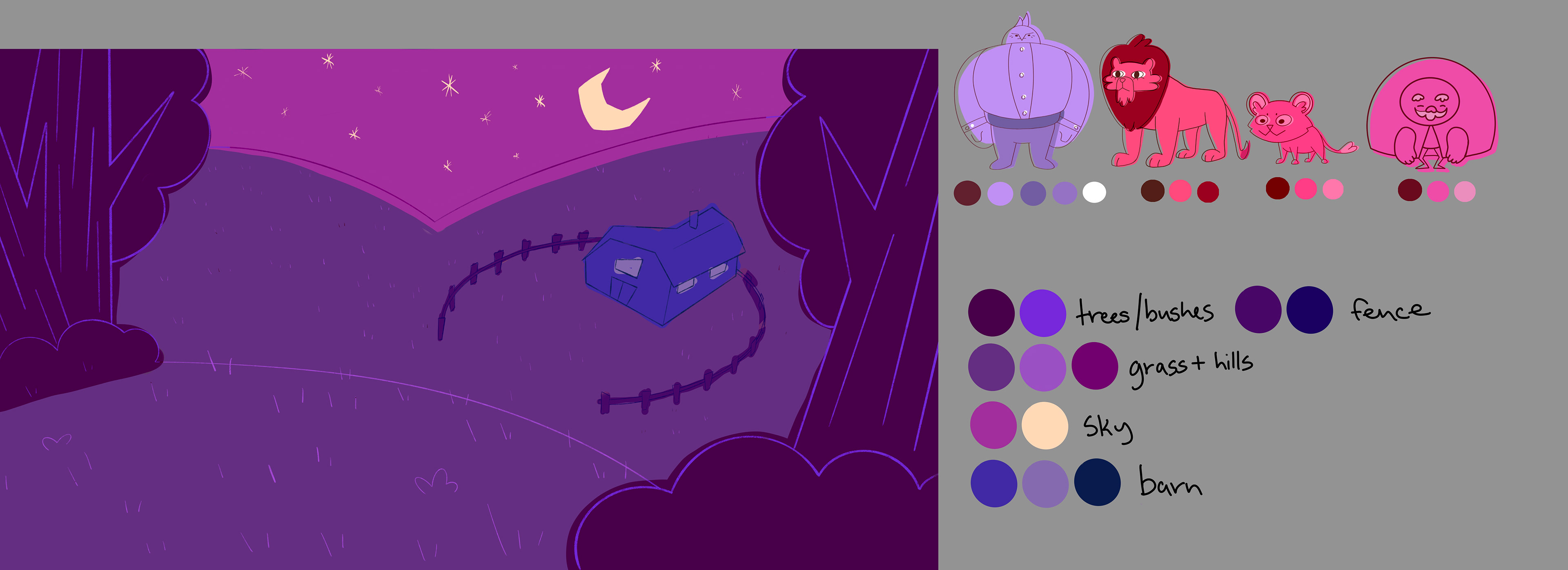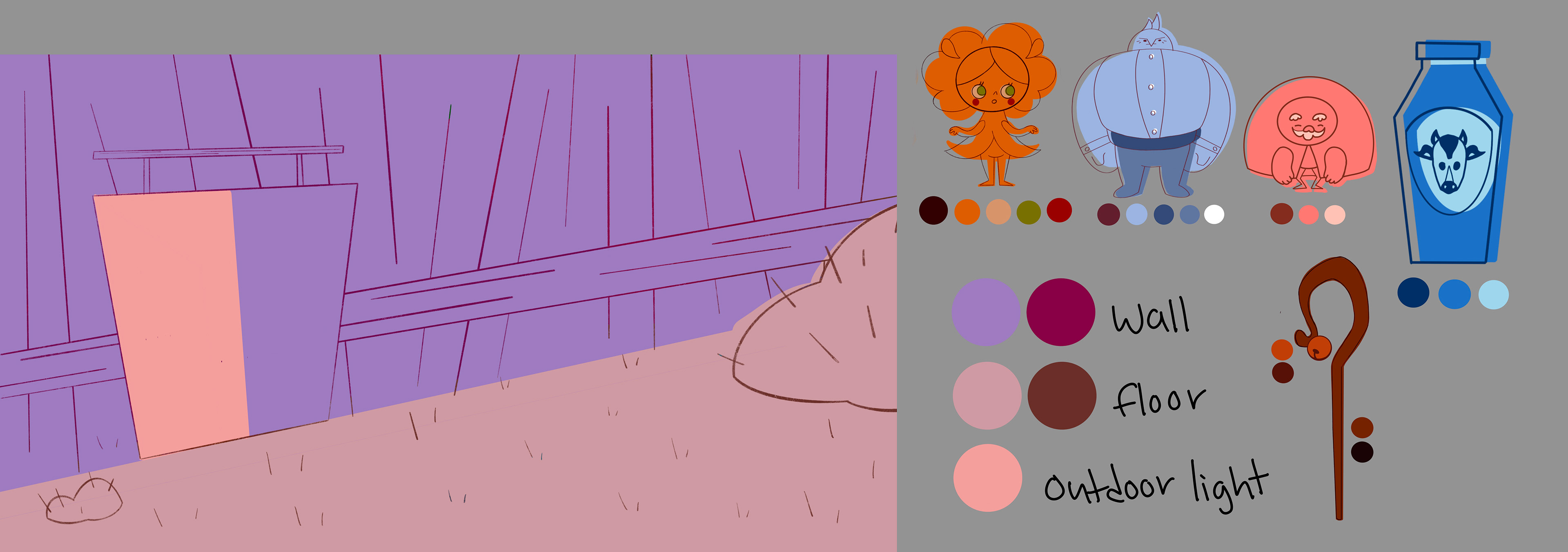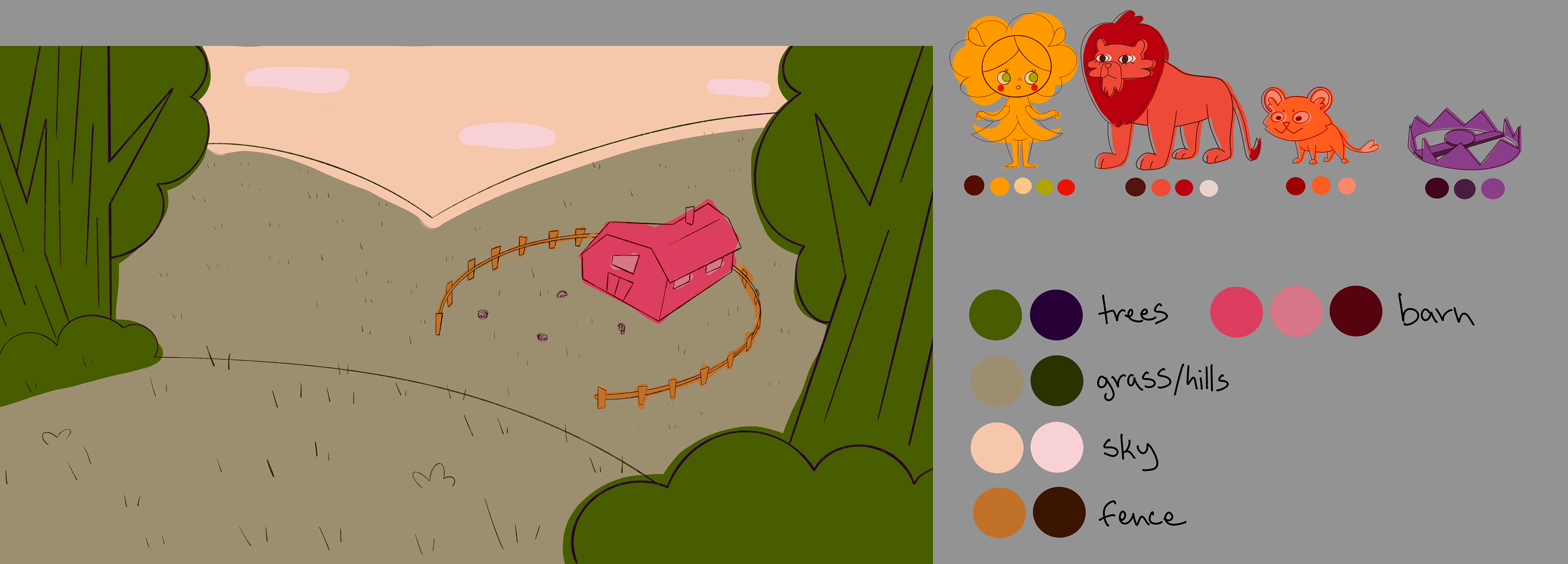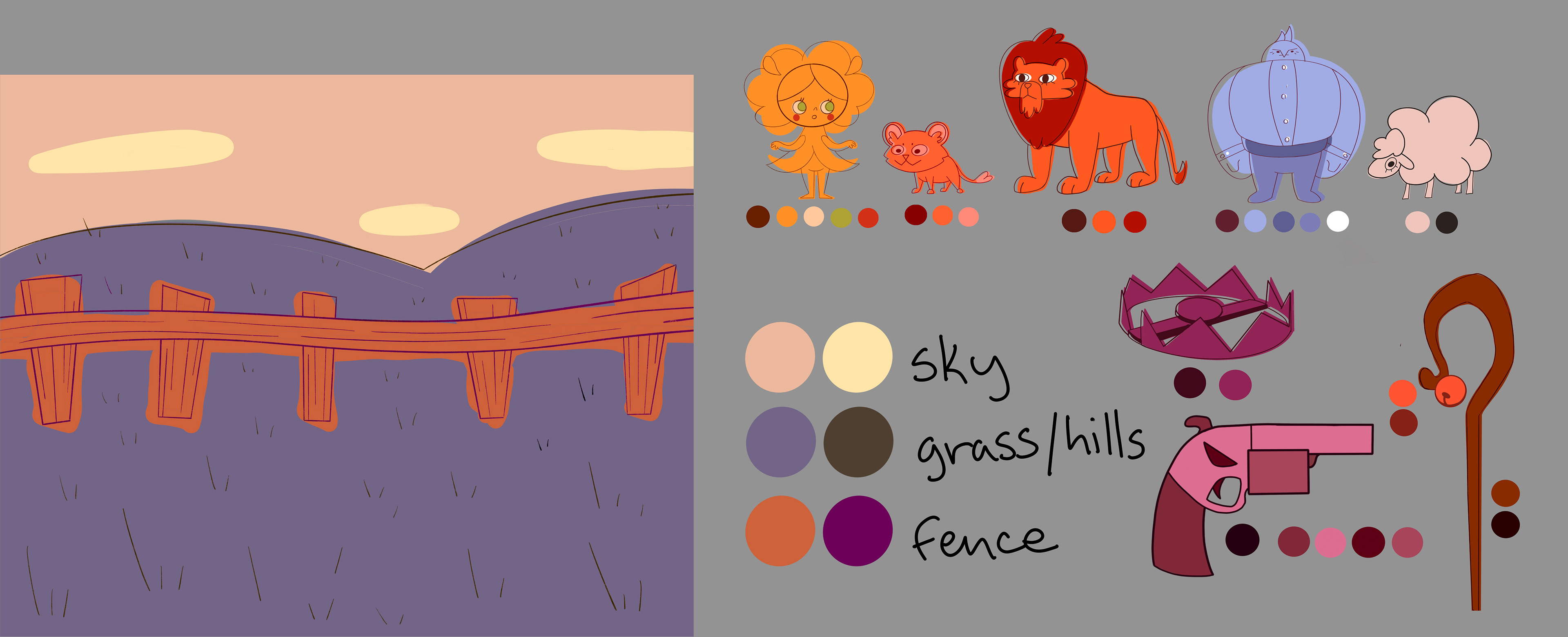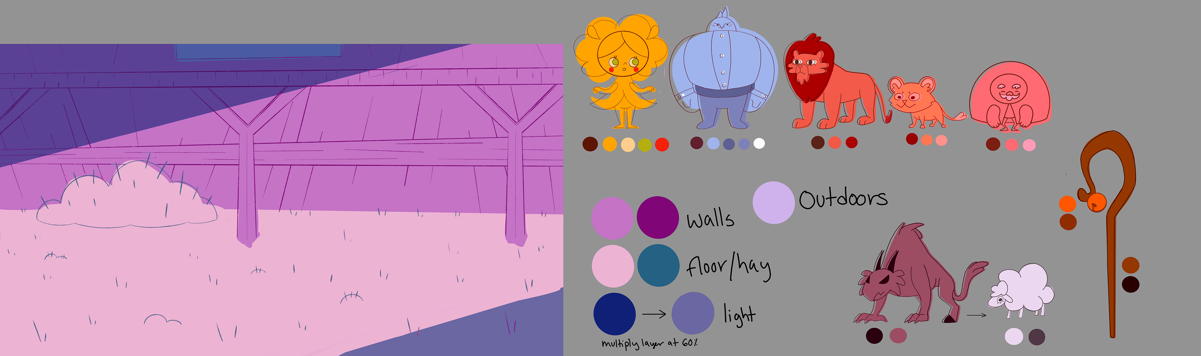 Layouts and color script work for the award-winning student film "The Lion Herder"